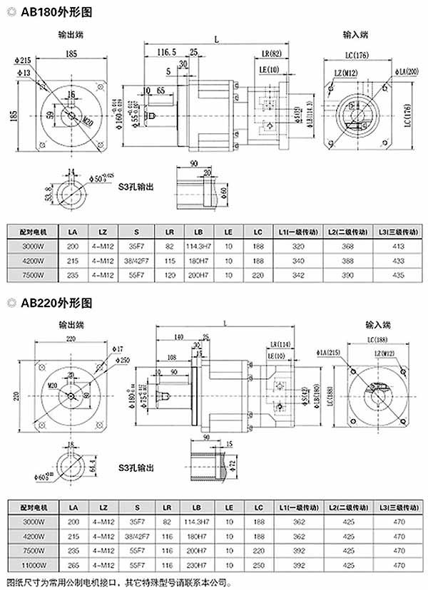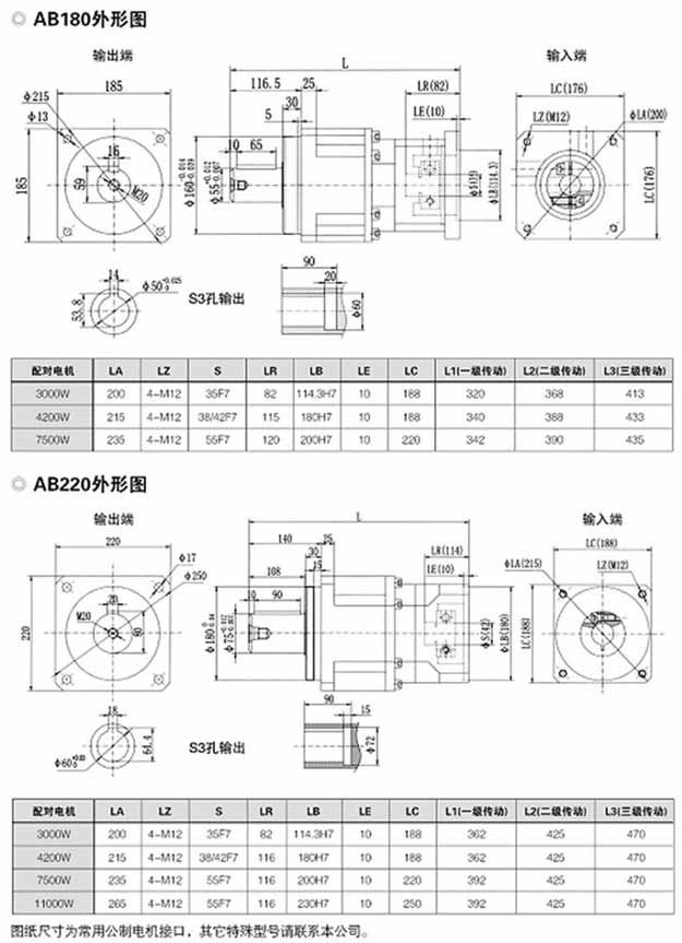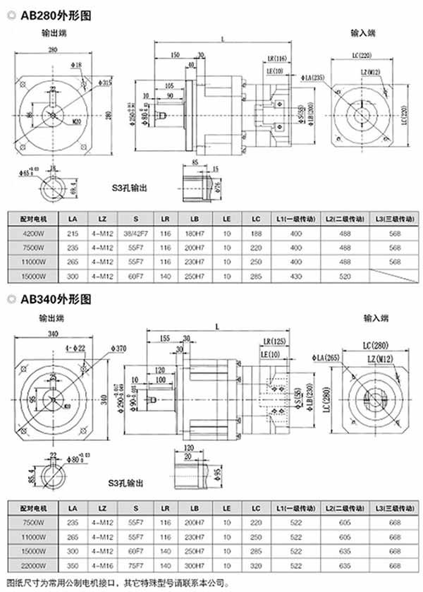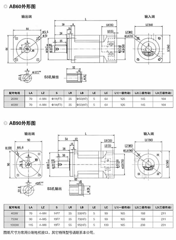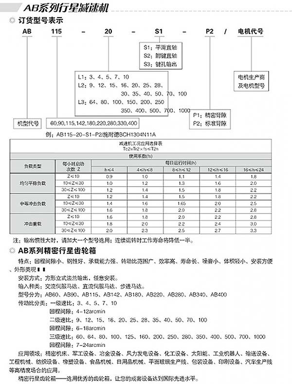 AB系列精密行星減速器是行業內對行星減速機的另一種稱呼。它的主要傳動結構為:行星輪,太陽輪,內齒圈。相對其他減速機,精密行星減速機具有高剛性、高精度(單級可做到1分以內)、高傳動效率(單級在97%-98%)、高的扭矩/體積比、終身免維護等特點。多數是安裝在步進電機和伺服電機上,用來降低轉速,提升扭矩,匹配慣量。